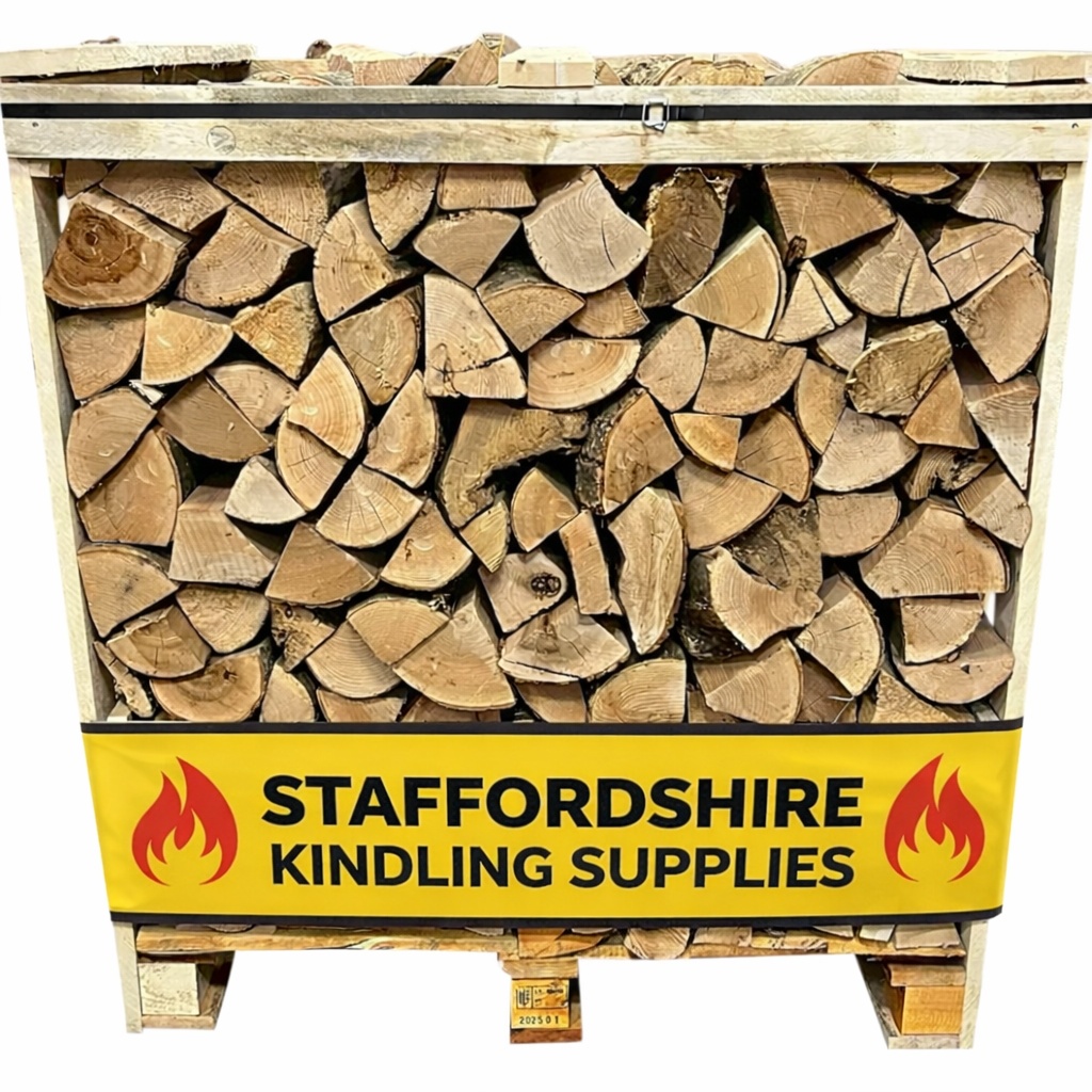 A crate of kiln dried hardwood silver birch logs